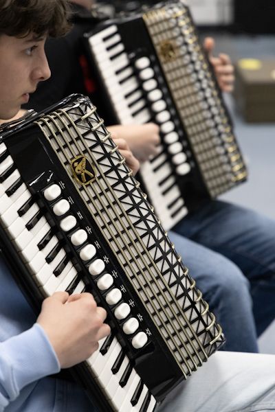 Ab ca. 6 Jahren bieten wir den Akkordeonunterricht an. Dafür können bei uns Instrumente in verschiedenen Größen ausgeliehen werden. So können die Kinder ausprobieren, ob ihnen das Akkordeonspielen Spaß macht.