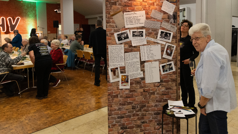 Auch im Foyer wurde die Geschichte des Vereins lebendig. Auf liebevoll gestalteten Backsteinwänden waren Fotos aus 90 Jahren Vereinsleben zu sehen. Viele Gäste blieben stehen, schauten sich die Bilder an und schrieben eigene Erinnerungen dazu. So entstand im Laufe des Abends eine ganz besondere Sammlung persönlicher Geschichten rund um die HHV.