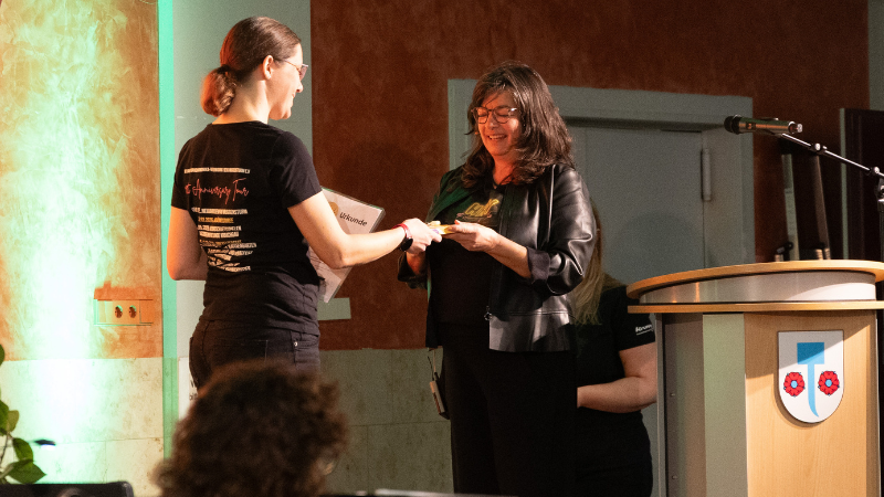 Für einen weiteren feierlichen Höhepunkt sorgte Carla Scheithe vom Deutschen Harmonika-Verband. In einer würdevollen Ansprache nahm sie die Ehrungen langjähriger Mitglieder vor und dankte ihnen für ihre Treue und ihren Einsatz für die HHV. Dabei erinnerte sie auch daran, dass 2026 das Jahr des Akkordeons ist – ein schönes Zeichen für dieses besondere Instrument.